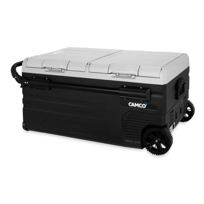 Camco CAM-950 Portable Refrigerator, AC 110V / DC 12V Compact Fridge / Freezer With Dual Zone Cooling, 95-Liter