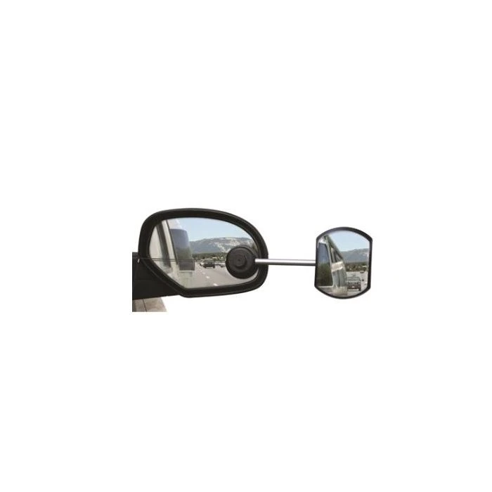 Camco’s Tow-N-See Mirror is an extended mirror that attaches to your existing vehicle side mirror. It attaches to the side mirror itself so you can use your power window controls to adjust it. Installation is quick and easy with the simple twist of the knob, leaving no marks and making it easy to transfer from one vehicle to the next. Not recommended for auto-dimming mirrors. The mirror style is convex.