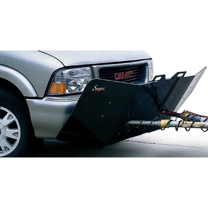 The Sentry® tow bar deflector is constructed of resilient, high density polyethylene and is attached to the connecting ears of the Demco tow bar.