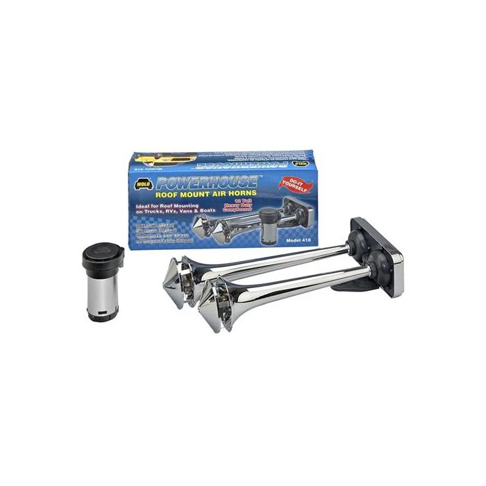 | Features | Powerhouse Is A Roof Mount Air Horn That Has Dual Metal Chrome Trumpets |