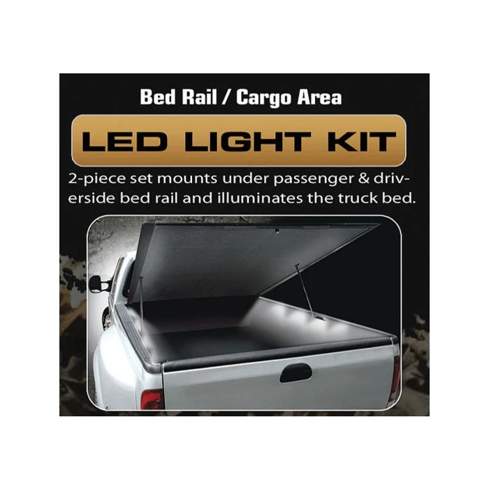 | Features | This light kit consists of a set of 2 thick yet flexible strips that each contain 4 LED light boxes which each have six 1/4-watt LEDs. This provides a total of 48 white LEDs which are extremely bright & illuminate the farthest reaching section of your truck's bed/cargo area. Whether you have a bed topper, a tonneau cover, or just want lots of extra light in your truck bed, THIS IS THE KIT FOR YOU. This kits is completely weather-proof & mounts out of site underneath both bed rails & illuminates the truck bed from inside the cargo area. Gone are the days of using a flashlight to see what's inside your truck bed! |