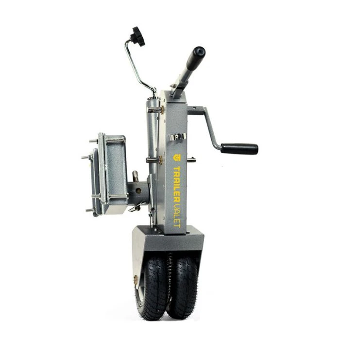 | Features | Trailer Valet is a tongue jack and trailer dolly that easily moves most any trailer up to 5000lbs with a turn of the drive handle. Features dual 9 inch tires and positraction for making tight turns and maximum traction, integrated automatic brake is applied when handle is released for superior safety. Making it ideal for boat, RV, construction, farm, horse, RTV, and flat bed trailers. The Trailer Valet works by simply turning the hand crank that powers our patented drive system. The drive system features both high and low gears and can be operated from either the right or left side. Also, when the steering handle is in the up position, it engages the drive system and allows you to steer into tight or otherwise inconvenient spots. When the handle is released the brake system is engaged. This trailer dolly can be conveniently locked into the upright position in seconds for easy storage when the job is done, or be quickly moved to reposition another trailer. For trailer tongues that are rectangular in profile, not cylindrical. Max tongue weight 500 lbs. Installs in minutes |